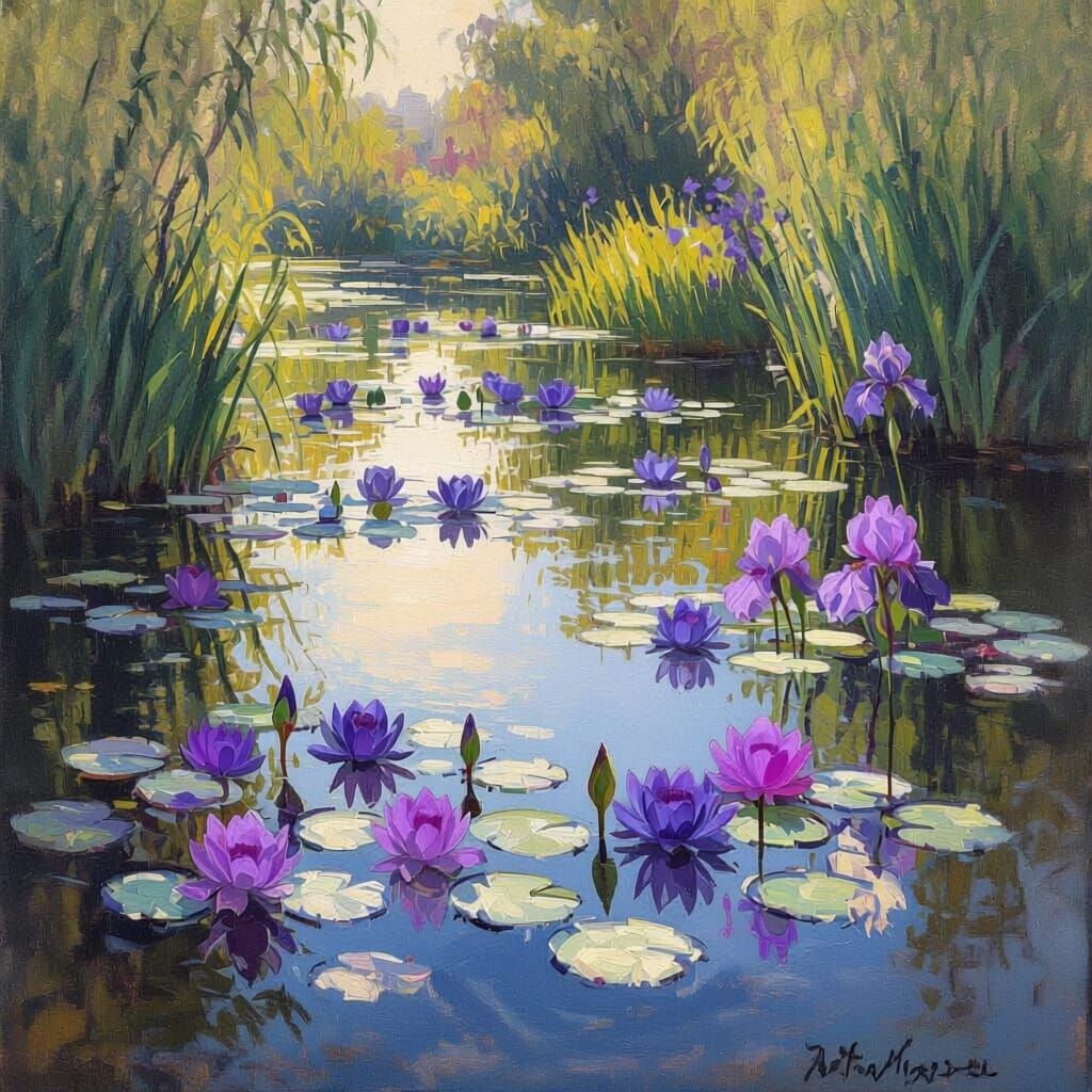 Easily create your own Monet style lily pond paintings with our free AI image generator.