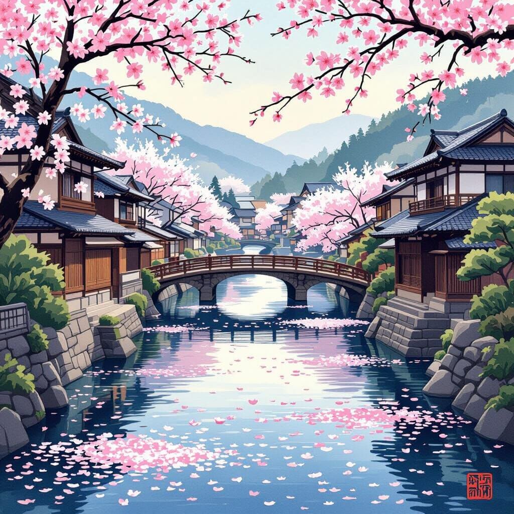 Generate your own traditional Japanese village images, complete with cherry blossoms, using our free and easy AI tool.