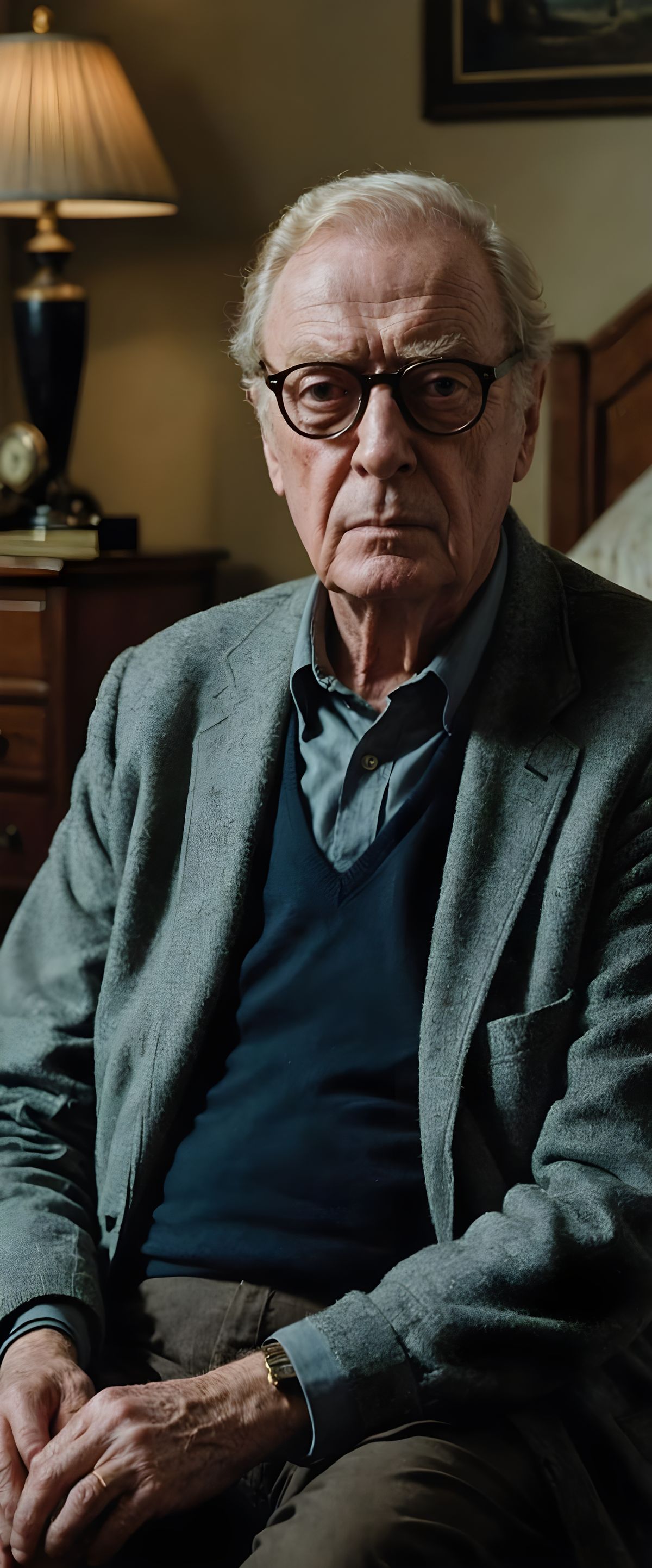 A poignant image of a frail, elderly man sitting in a dimly lit, empty bedroom, surrounded by a thick, mysterious mist. This haunting scene is reminiscent of a film noir atmosphere.