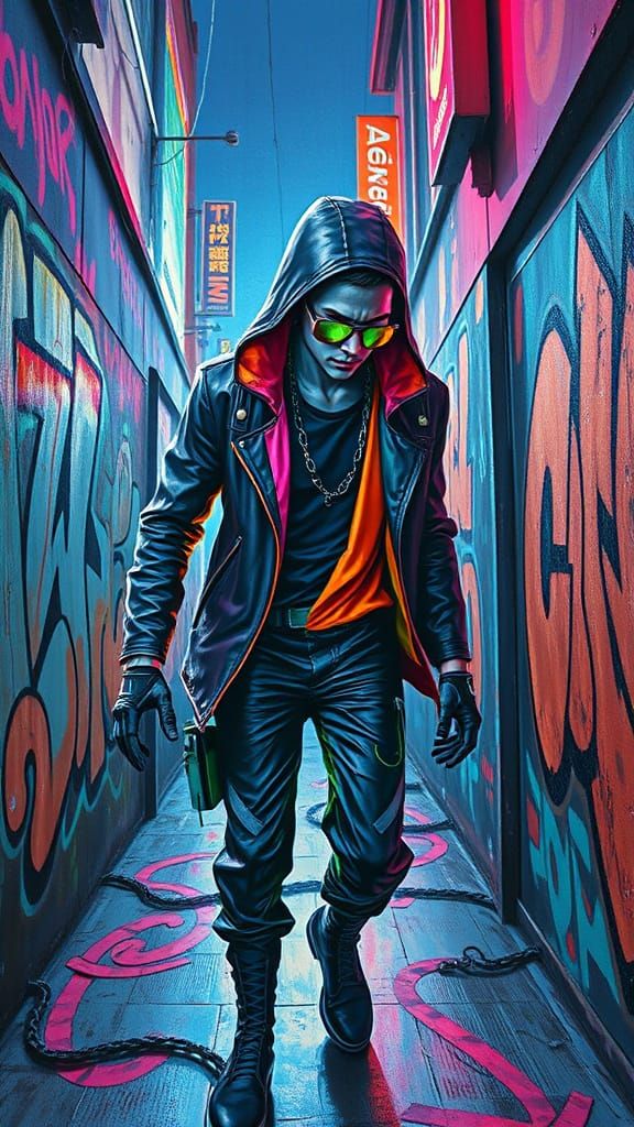 Opal Wolf Holographic Chase Tim Burton contrasting colors deep color graffiti street art surrealism movie poster action painting quilling oil on canvas 3D shading shadow depth complex cosmic glowing neon iridescent intricate holographic magnificent cyberpunk Male