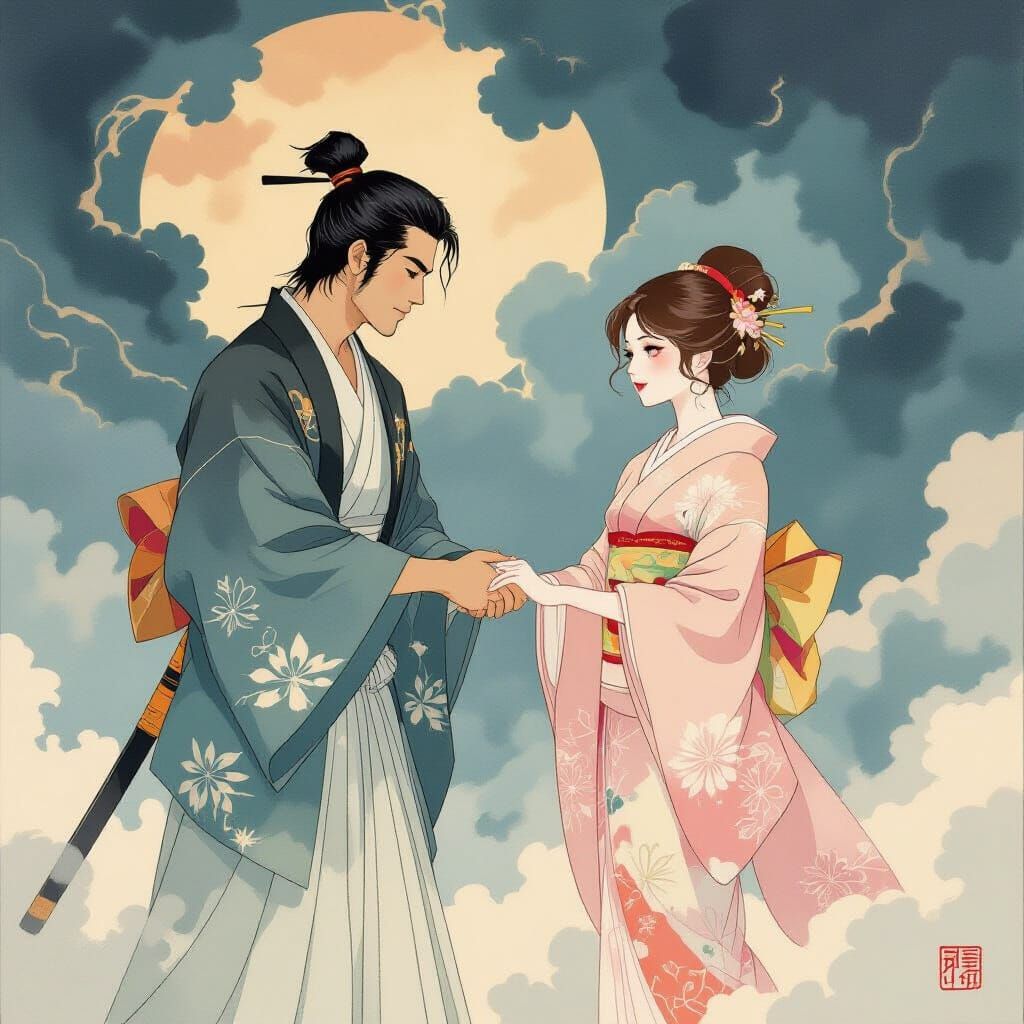 Create your own romantic scenes in feudal Japan with our free and easy AI image generator.