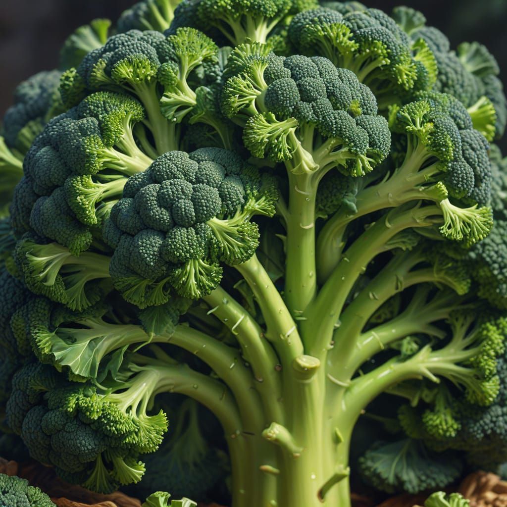 This image shows a close-up, photorealistic oil painting of broccoli. The artwork features vibrant green hues, fine brushstrokes, soft natural lighting, and a warm color scheme. Artstation quality.