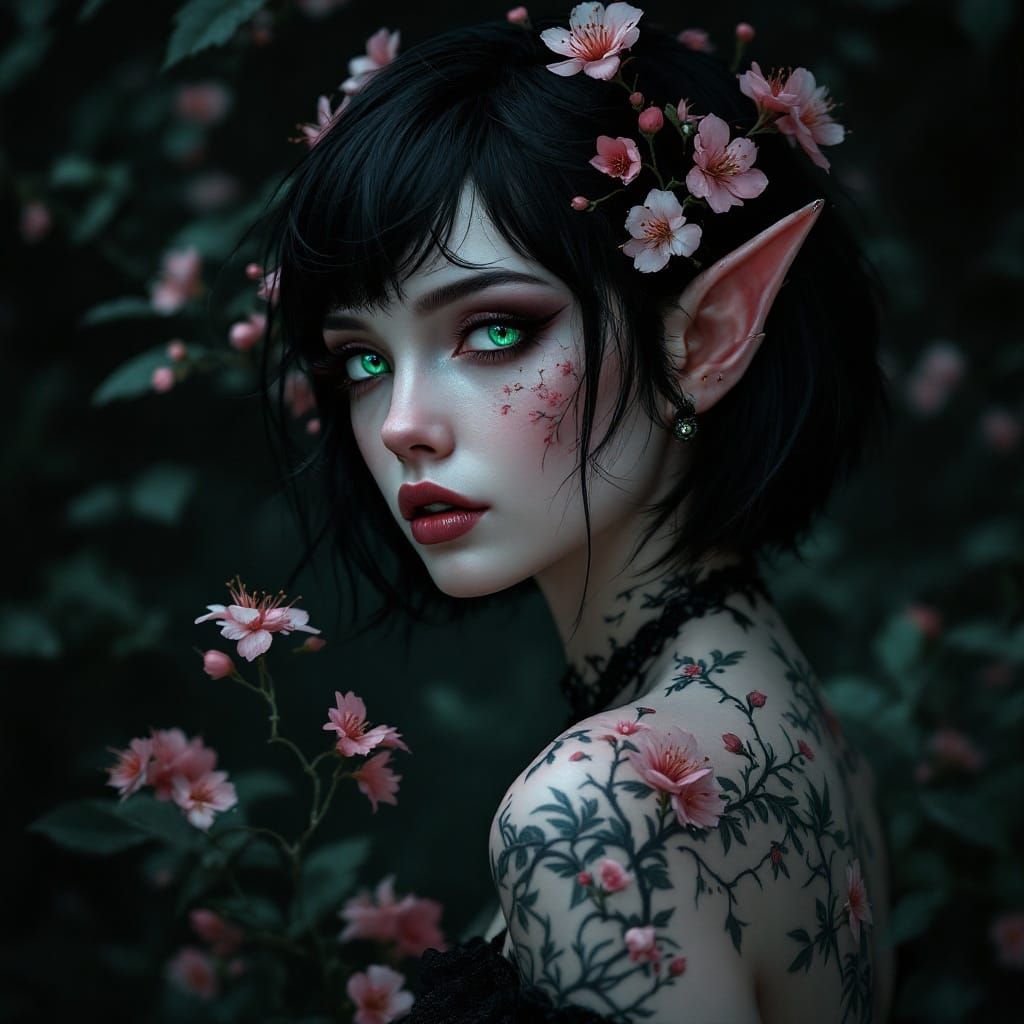 Easily generate goth elf girl images with our free AI image generator, perfect for tattoos, art, or fantasy worlds