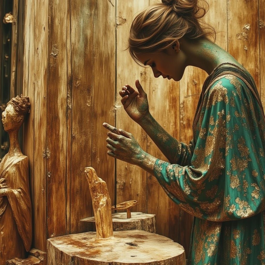 Create your own natural and textured wooden sculptures with our free AI image generator.