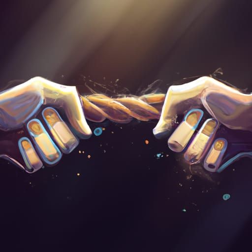 This image depicts wrists bound with rope in a dimly lit scene. The artwork features a cinematic and dramatic atmosphere, rendered with meticulous detail and faded colors.