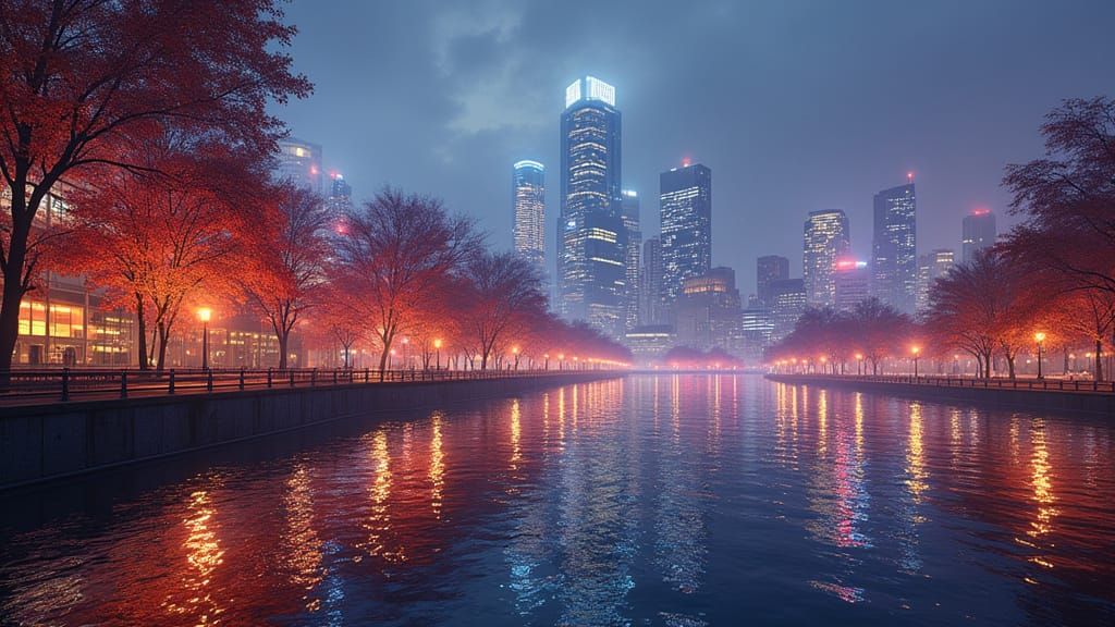 A hyperrealistic concept art piece showcasing the vibrant, detailed vista of futuristic Minneapolis under dramatic lighting. This splash art masterpiece captures the city's energy and cultural depth.