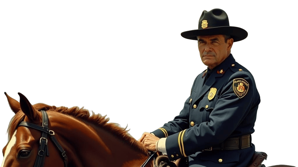 Easily generate your own police horseback images with our free AI image generator, featuring Maryland State Police Officers in realistic settings