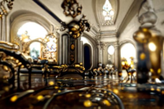 This image showcases an ultra baroque scene rendered with 3D shading and depth. The artwork evokes a trending style seen on Artstation, reminiscent of digital art.