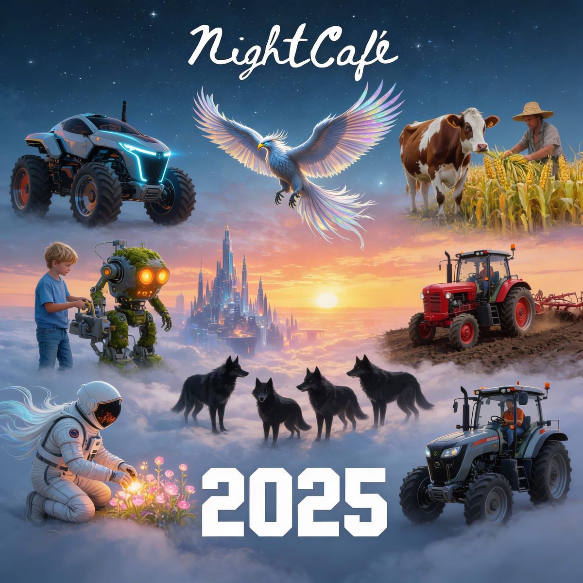 This AI-generated image is a creative collage of multiple artworks from 2025, seamlessly blending their main subjects into a unified visual narrative with artistic lettering and a logo.