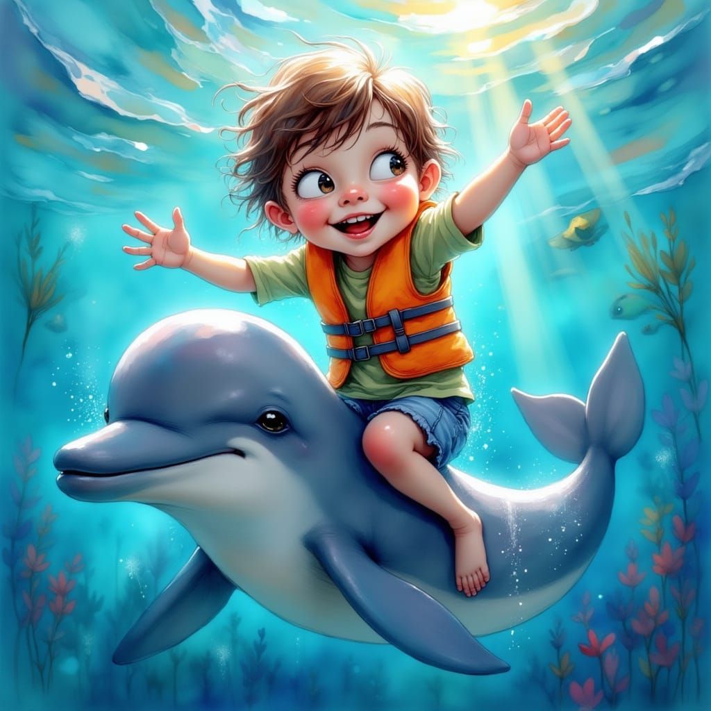 Easily create unique images of children and dolphins with our free AI art generator. Start creating now!