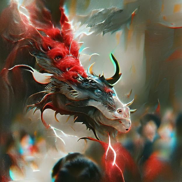 A vibrant image of a dragon with distinctive red horns, likely created using AI and inspired by artwork featured on Artstation.