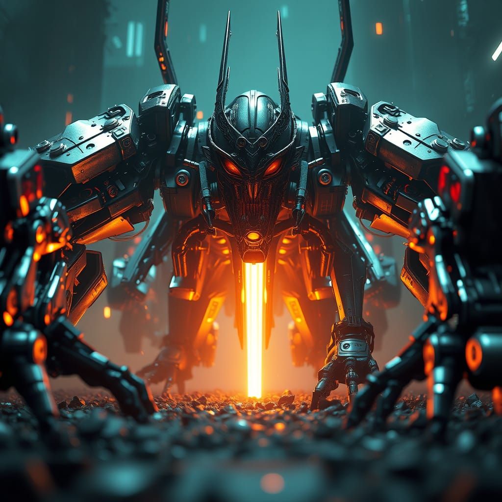 This image depicts Morte Lenta, an urban myth and living legend with a futuristic, punk aesthetic. Features intricate mechanical details and a dramatic, cinematic atmosphere rendered in high-fidelity 3D.