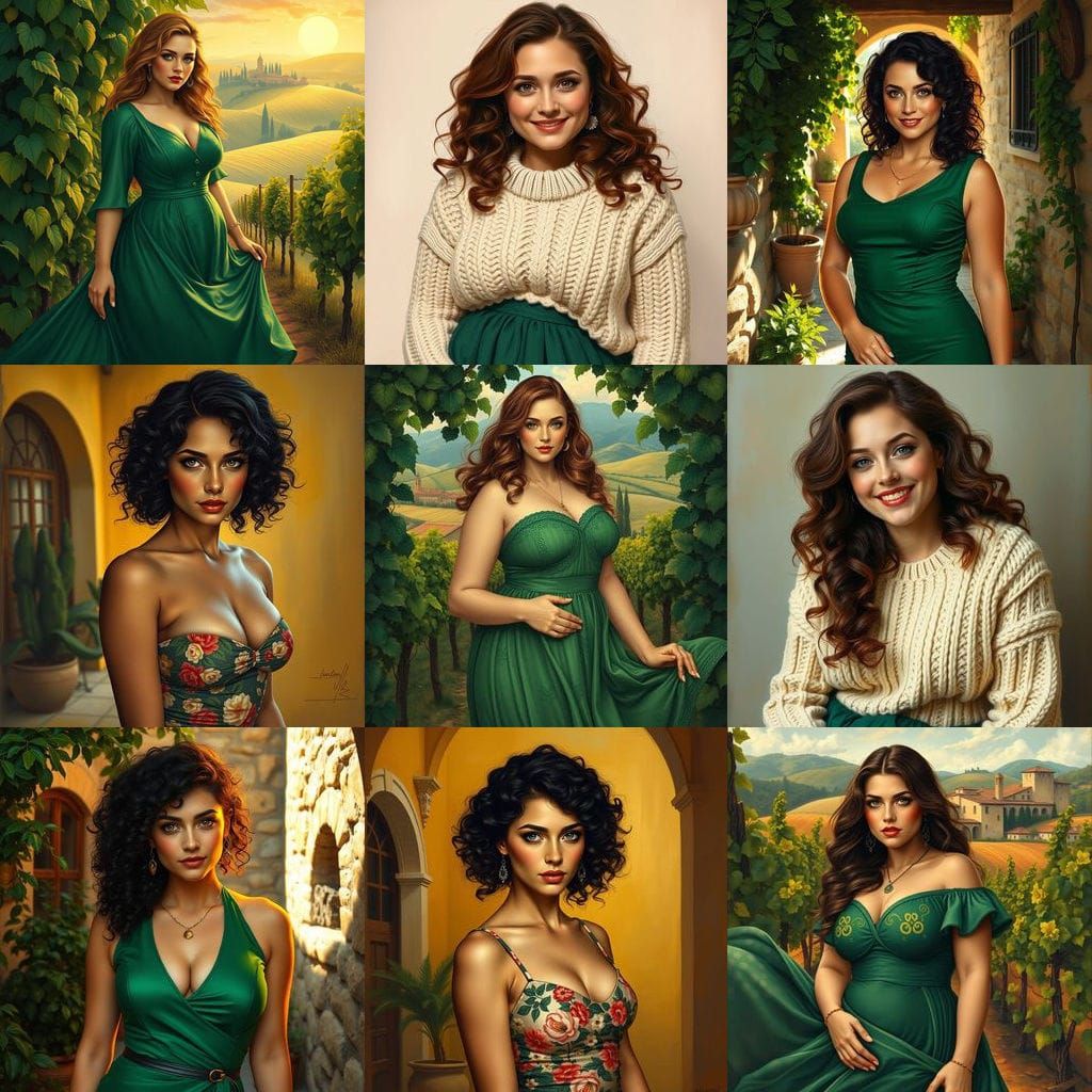 A serene portrait of a curvy woman with a mix of Italian and Irish heritage, featuring striking light eyes and a captivating presence.