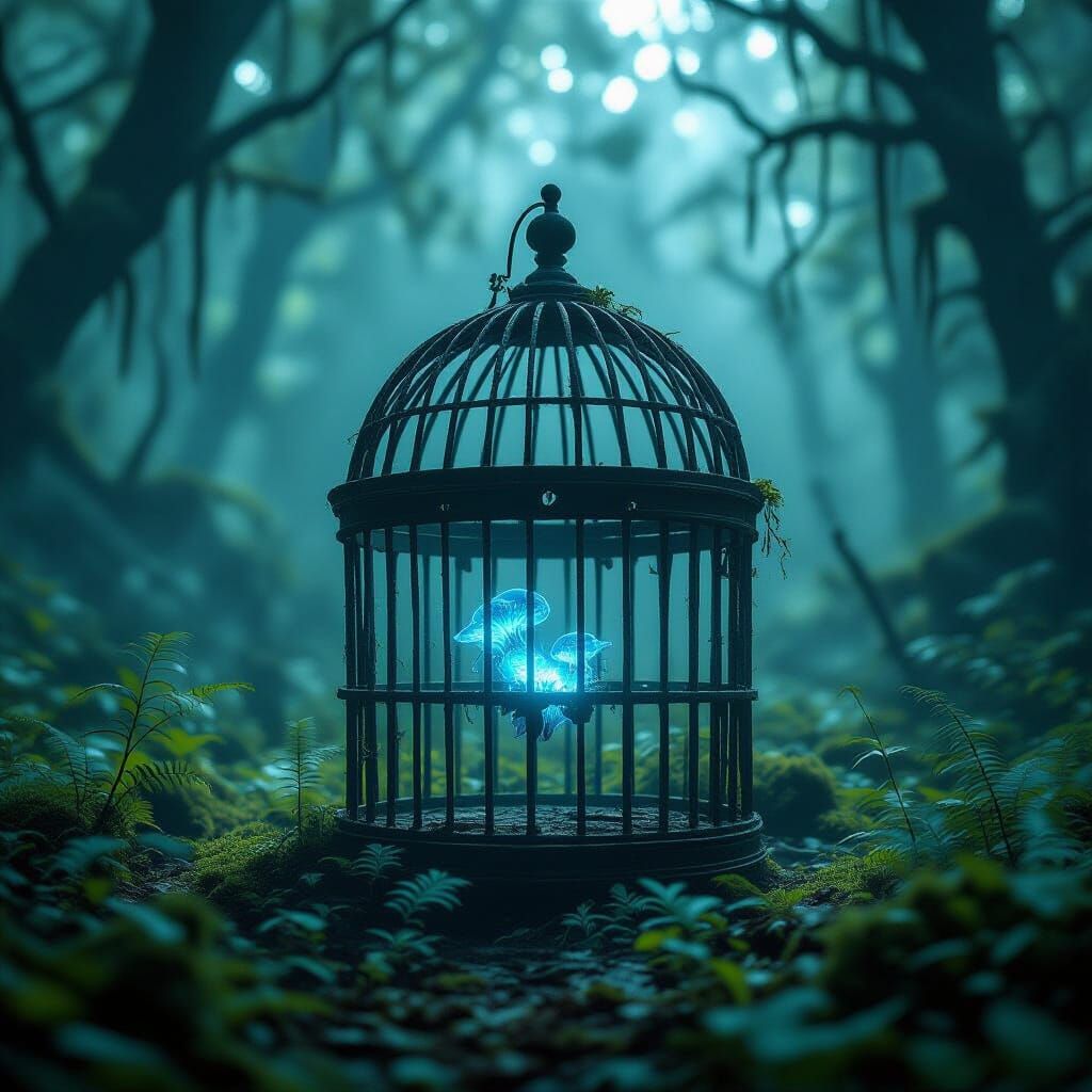 Generate unique AI images of abandoned birdcages and misty forests. Easy and free to use!