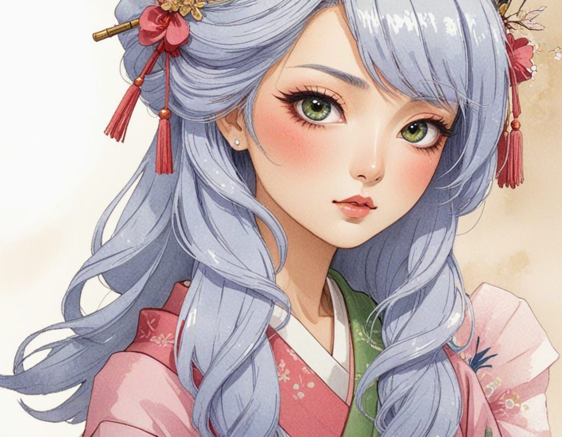 Make your own striking images of geishas or other subjects with silver hair and green eyes. It's free and easy!
