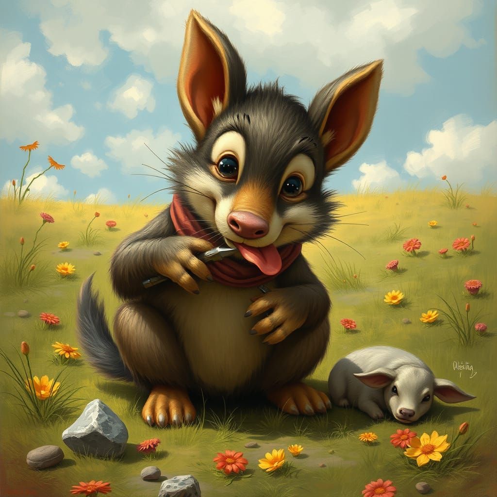 This image shows a playful Italian hound eating from a bowl in a warm, inviting atmosphere. The scene is rendered in a soft, impressionist style with gentle colors and textures.