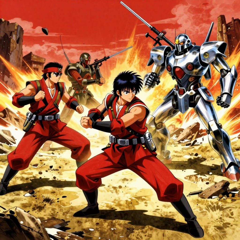 Generate unique images of Japanese soldiers battling ninja robots. Free and easy to use!
