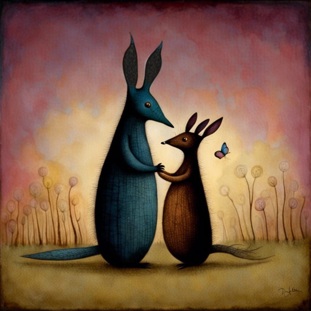 A whimsical illustration of woodland creatures in a natural setting. The image evokes a sense of nostalgia and charm, reminiscent of classic children's book illustrations.