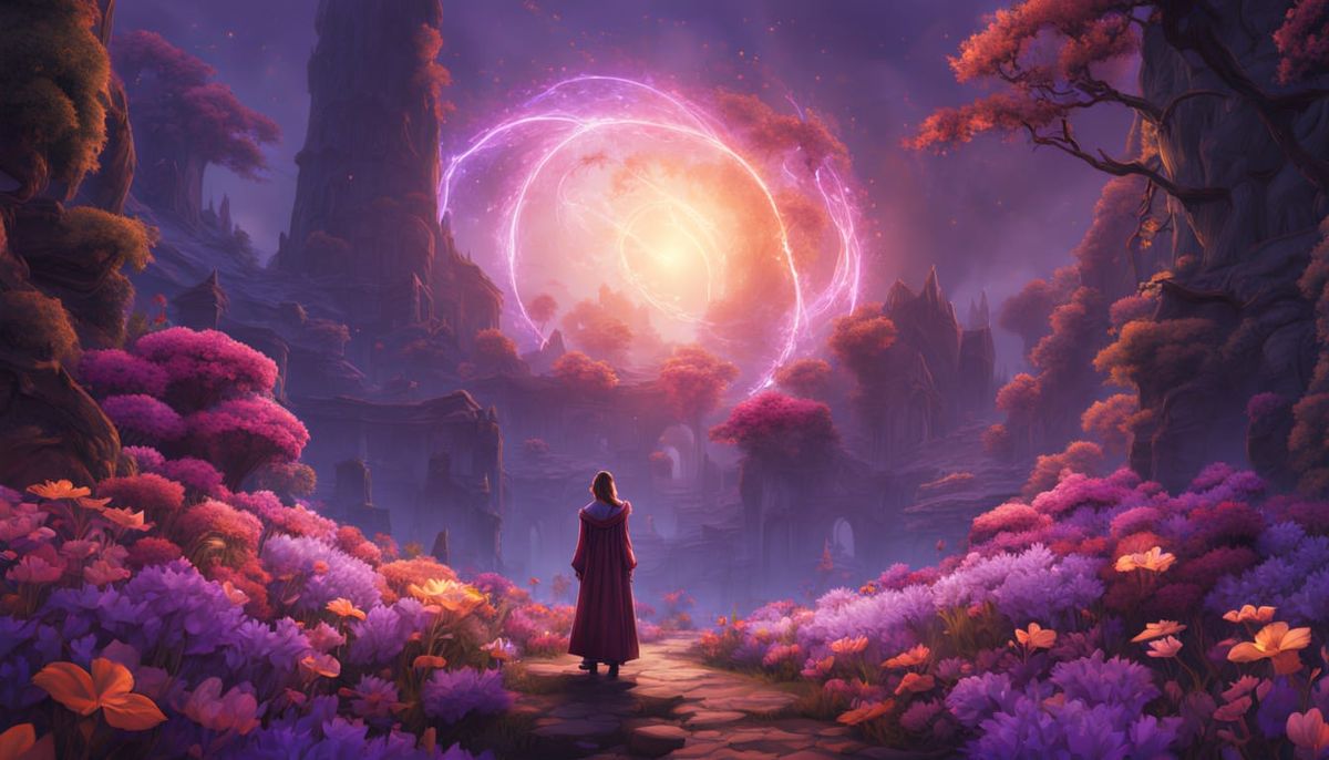 This image shows a radiant woman kneeling and holding the Dutch flag. A double exposure effect reveals flowers and light, set in a surreal aesthetic with purple and gold hues.
