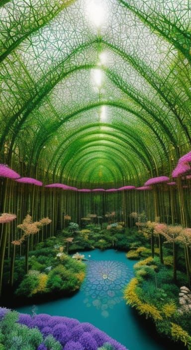 A vibrant image of a stargazing platform enmeshed in a floral mycelium network. The artwork features rich colors, sharp details, and dynamic perspective, rendered with amazing depth.