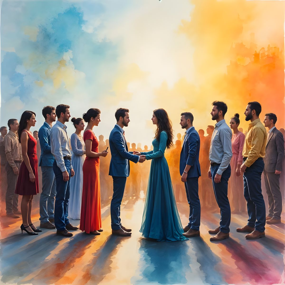 This image visually represents the concept of democracy, where everyone, regardless of strength, has equal chances. Rendered in watercolor.