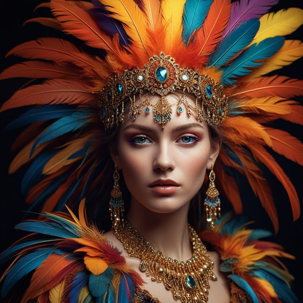 Design your own stunning fashion creations! Our free AI image generator makes it easy to experiment with colorful feather designs.