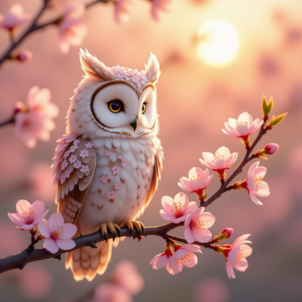 Generate unique owl images with AI. Try creating your own cherry blossom owl or any other owl you can imagine!