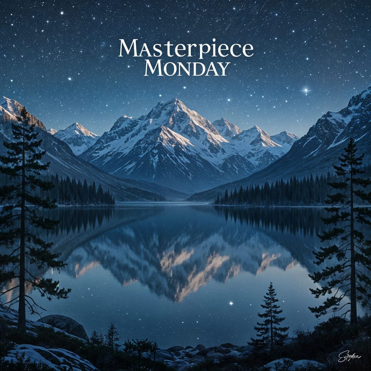 This image shows a tranquil mountain lake reflecting a star-filled night sky. Snow-dusted peaks and ancient pine trees frame the serene, awe-inspiring natural beauty. Rendered with photorealistic detail and a touch of romanticism.