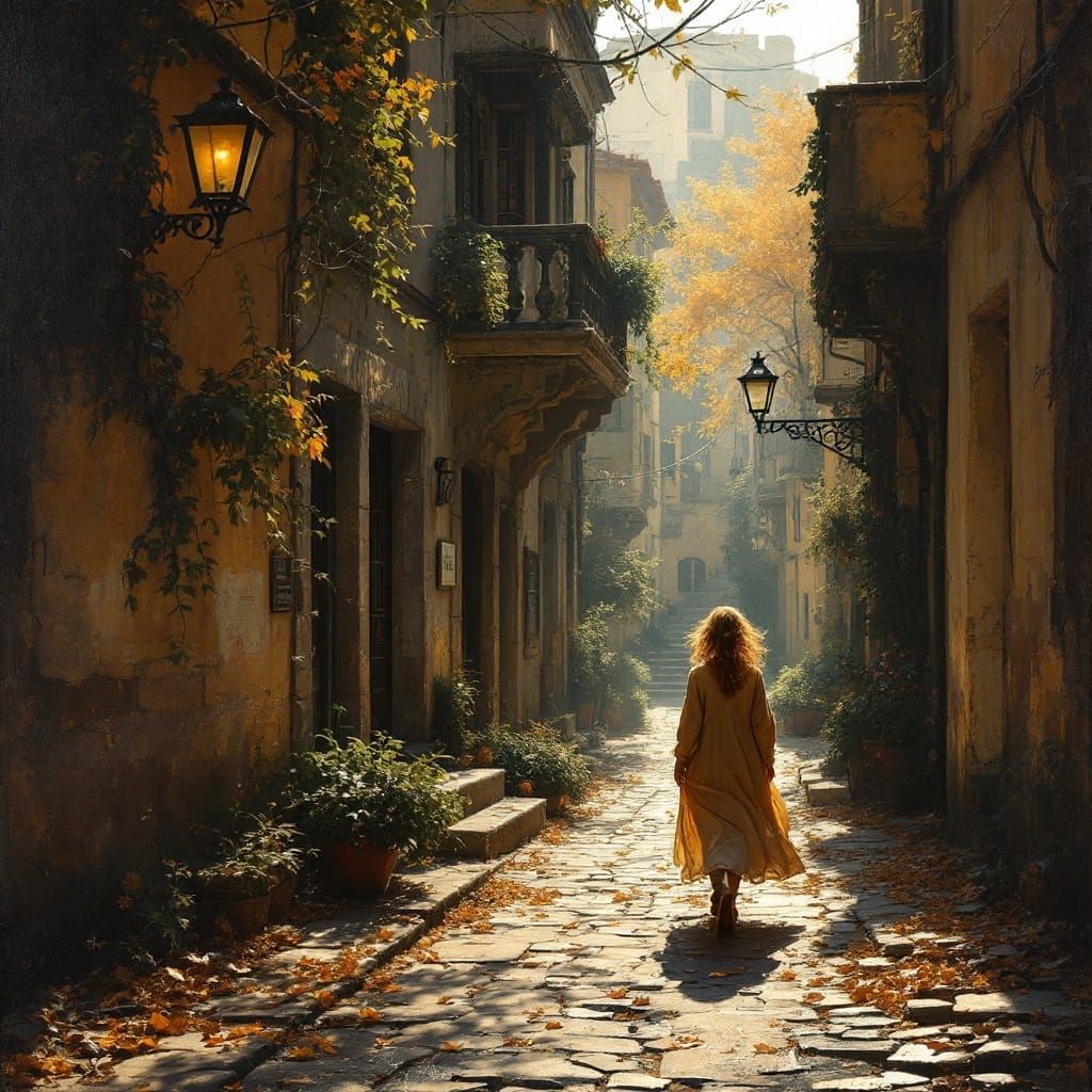 This image shows a fusion of aged fresco and old master techniques. Temporal depth creates historical resonance with subtle weathering, enhancing the scene's sense of history.