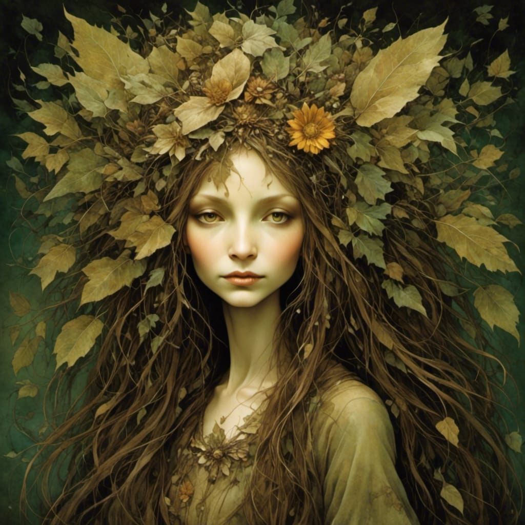 A beautiful image showing a fantasy character created with AI. The image showcases the unique aesthetic achieved through the use of Loras, blending artistic styles.