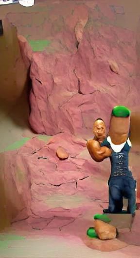 This image shows a claymation rendering of Dwayne 'The Rock' Johnson. The art style evokes classic stop-motion animation.