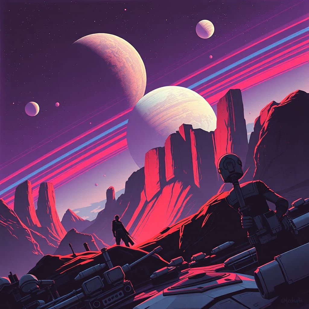 Create your own futuristic visions with our free AI image generator in the style of Syd Mead.