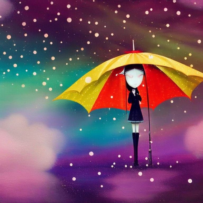 sadness: anime tattered umbrella, snow falling, autumn rain, barren trees by artist "Shaun Tan", by artist "Mab Graves", by artist "Rien Poortvliet"