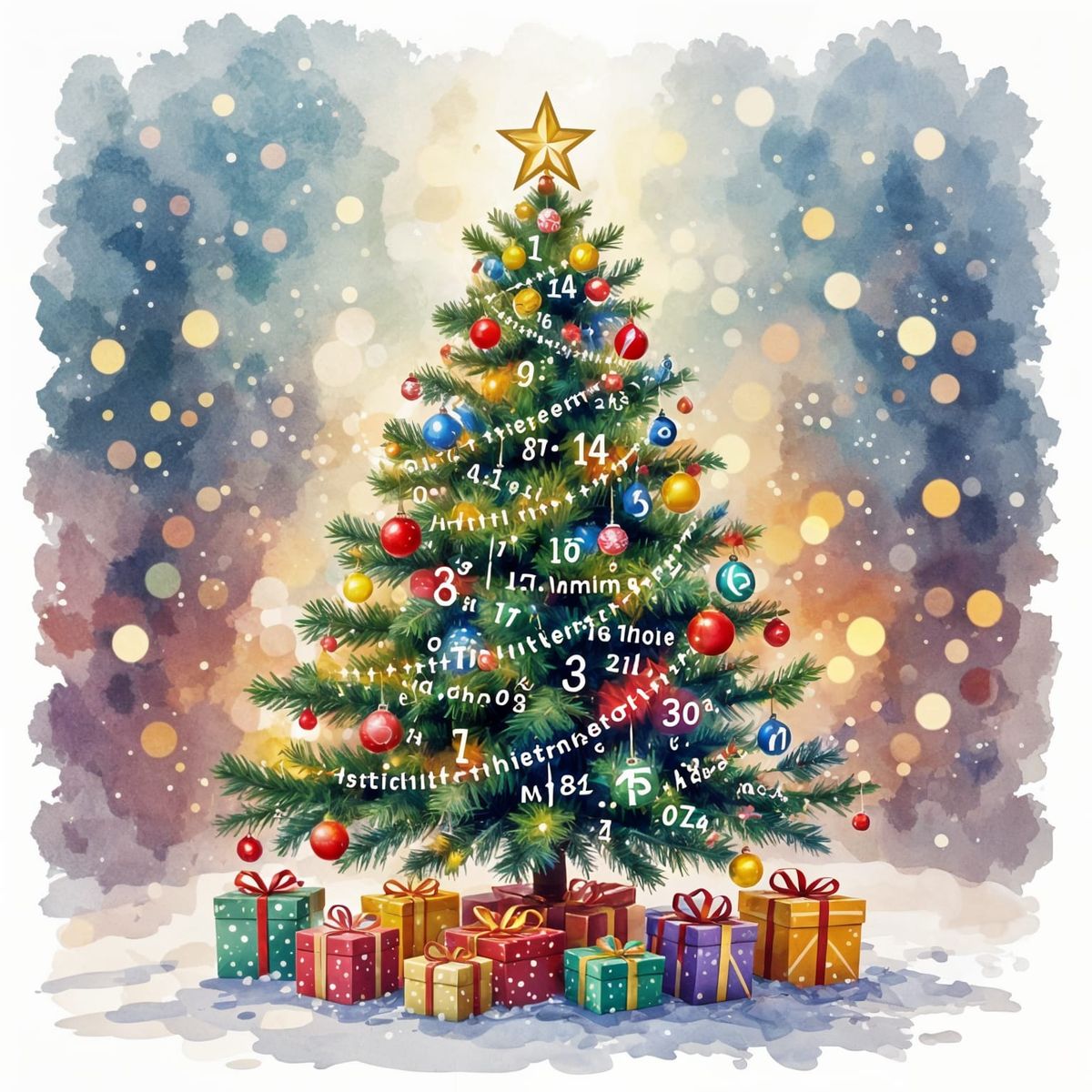 A festive Christmas card featuring a tree adorned with mathematical numbers and formulas. Perfect for sending holiday greetings to math enthusiasts.
