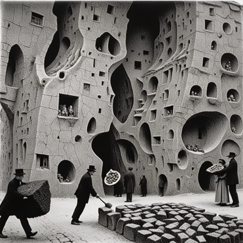 This image is a haunting blend of reality and madness, with intricate details and a sense of unease, reminiscent of the works of surrealist masters.