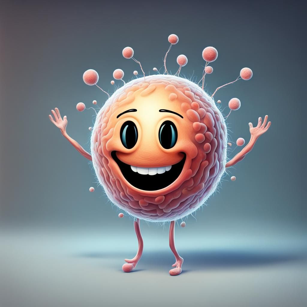 This image shows a smiling human nerve cell. The cell has a distinctly happy facial expression.