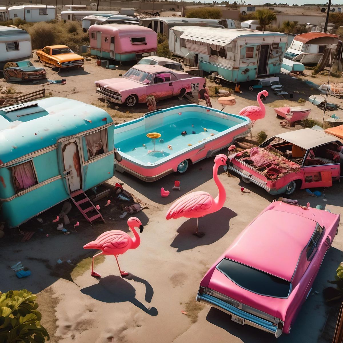 Make your own retro-style trailer park images with our free and easy AI image generator today!