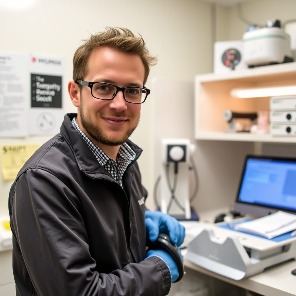 This image depicts a scientist attempting to conceal his tracks in a crime lab setting. The scene is rendered in a dark, gritty aesthetic with muted colors, evoking a sense of foreboding and secrecy.