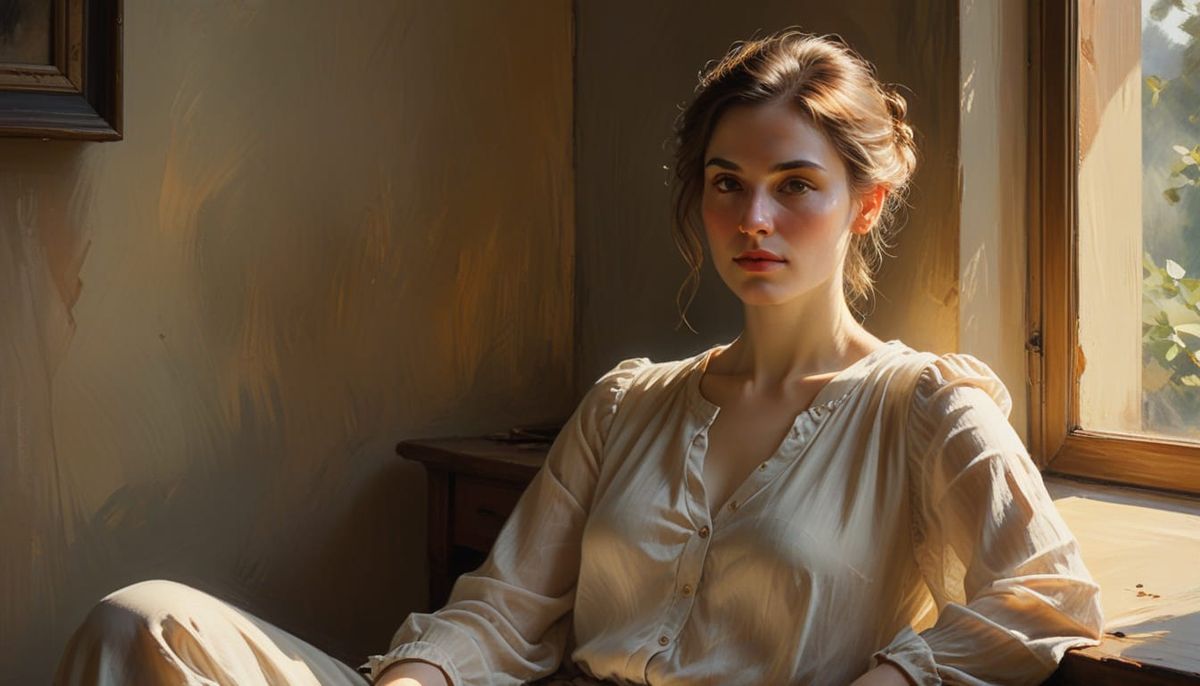 This intimate oil portrait captures a woman's serene and inviting presence, bathed in warm, golden light with softly blended colors and loose brushwork, evoking a sense of emotional realism.