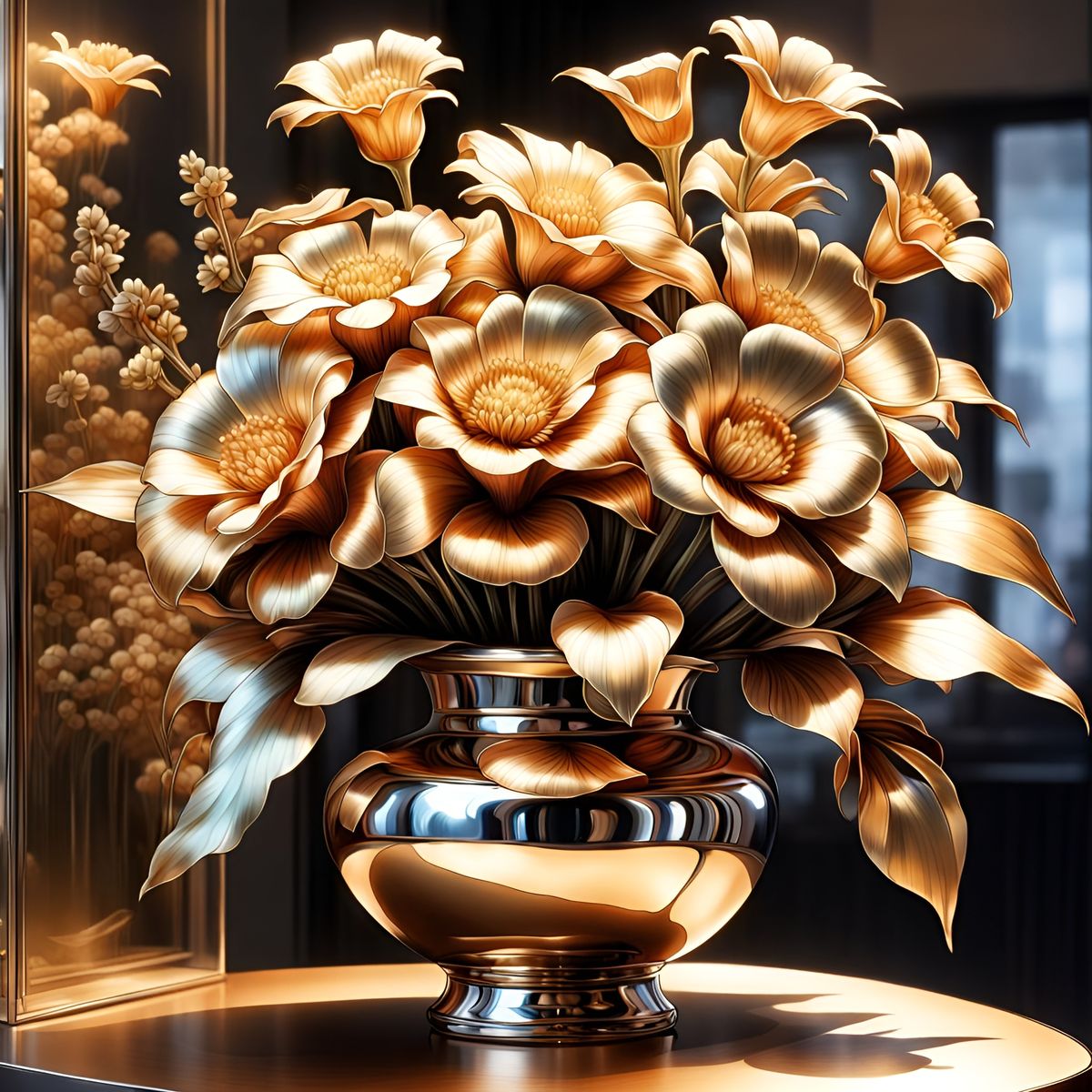 Create your own metallic flower arrangements with our free AI image generator. It's easy and fun!