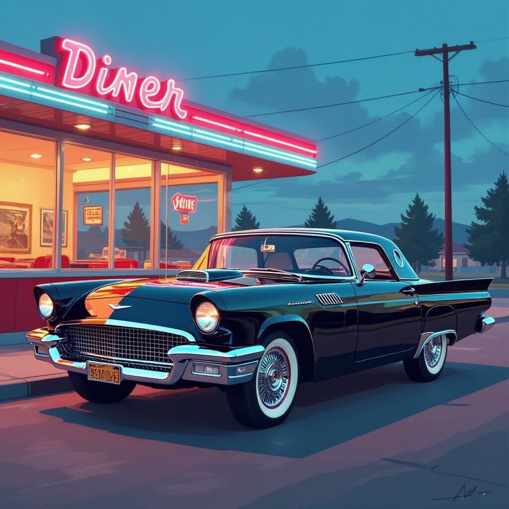 Easily generate unique images of classic cars and diners with our free AI tool. Get creative now!