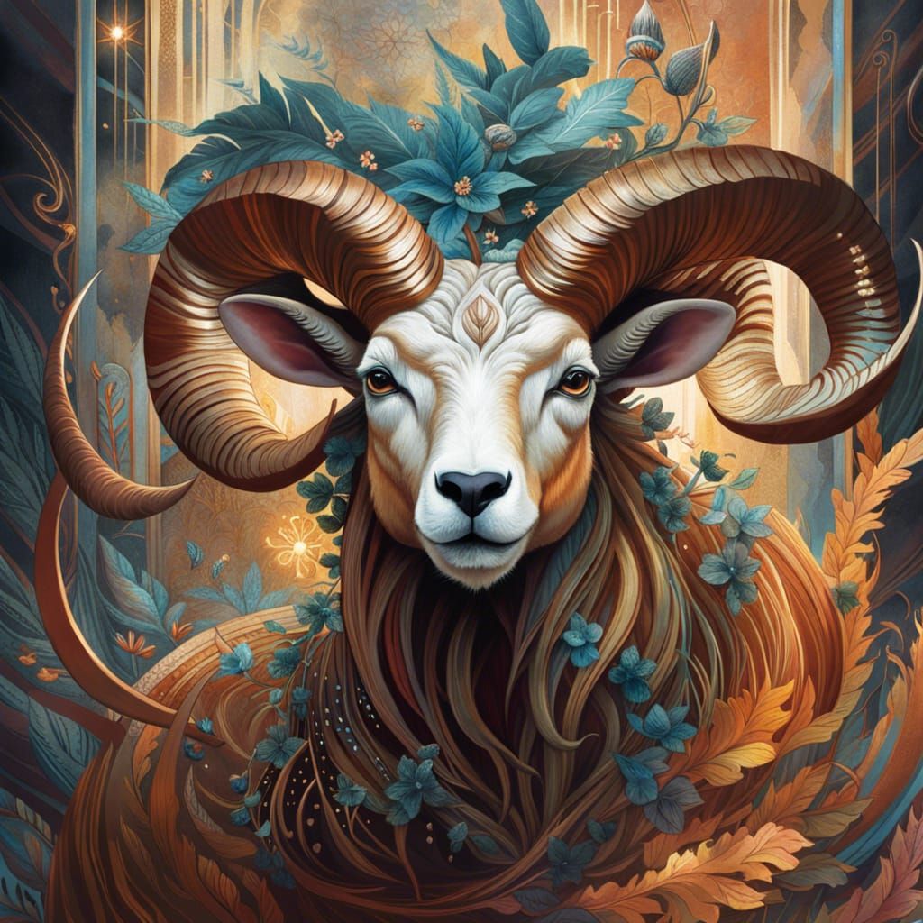 close up Portrait a Ram Genuine Ram close up portrait of Mysterious Ram swirling forest !! :: breathtaking Ram cover art Artwork, perfect 8 k by Jon Foster, Carne Griffiths, Camilla D'Errico, Jean Baptiste Monge, Guweiz, insanely detailed, speedpaint with large brush strokes and paint splatter, triadic ...