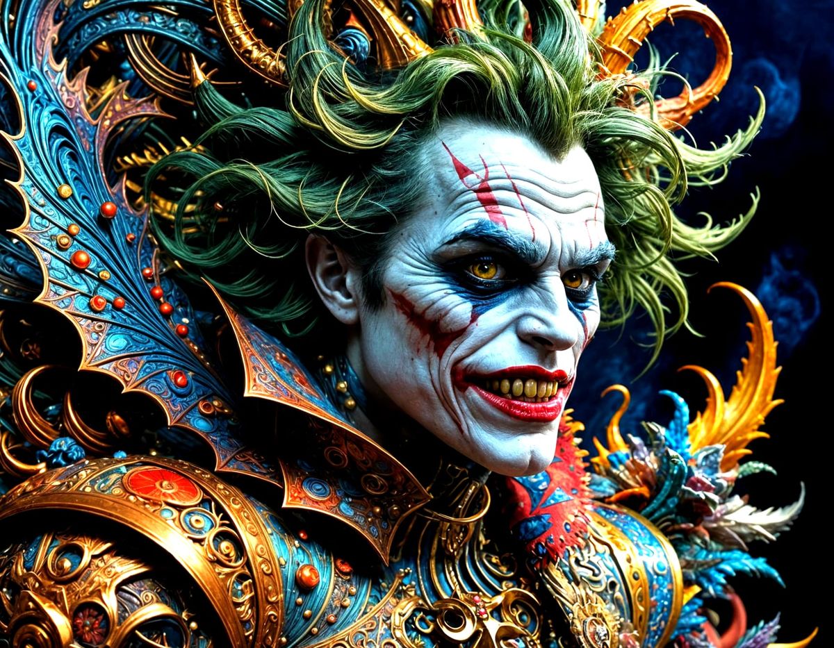 Made-Up Supervillain: Insane Chaotic the style of Tim Burton, "Joker Warwick Goble".