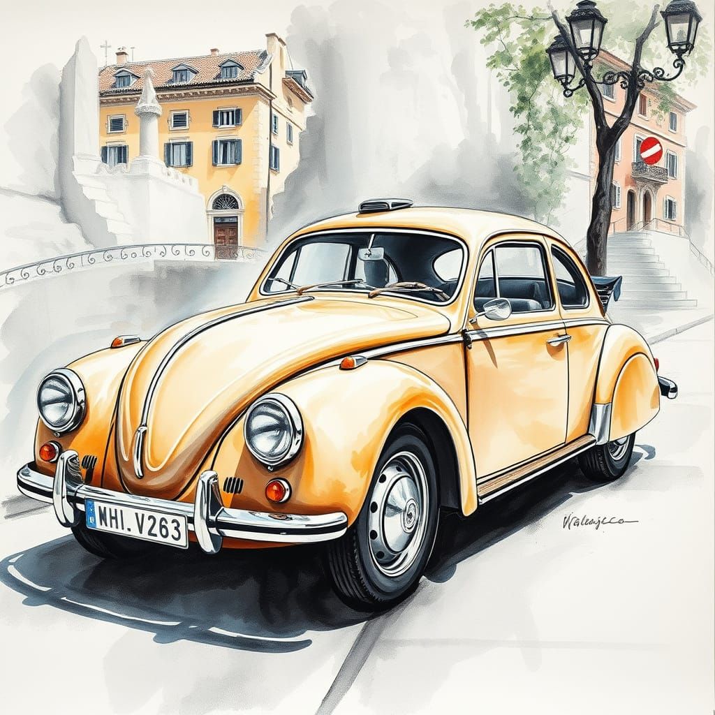I love the Beetle car, it's so cartoon-like and curvy it always makes me smile! Great image : )