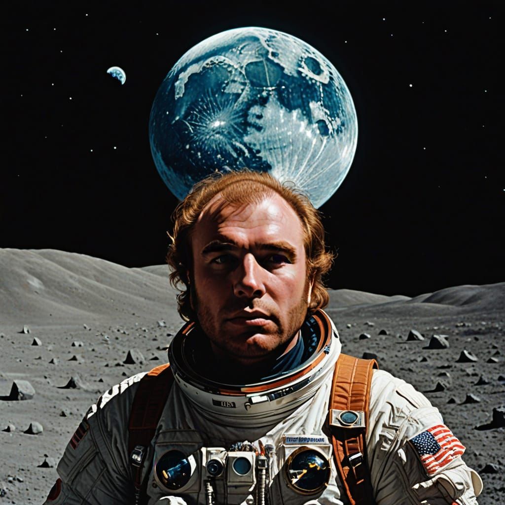 This image depicts a serene lunar landscape where the sounds of Van Morrison's music seem to fill the air. The scene is a dreamy, ethereal blend of music and space, evoking a sense of peace and contemplation.