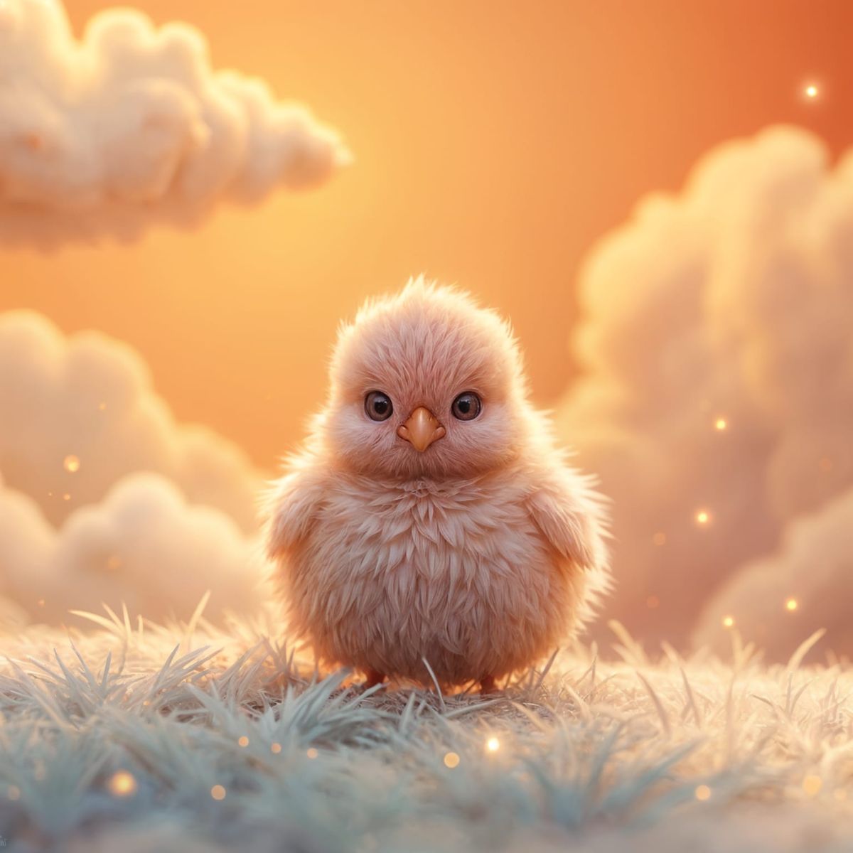This image shows a cute pink baby chick, depicted as detailed fantasy concept art in deep, complementary colors. The chick is rendered in 8k resolution.