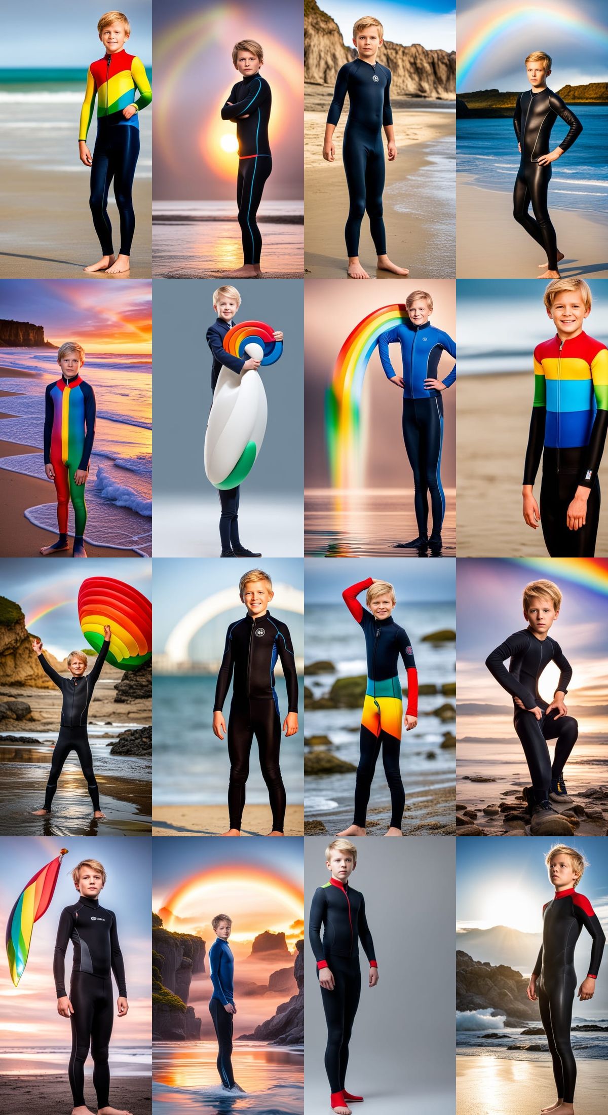 This image shows a blond boy in a wetsuit, a vibrant and realistic color portrait suitable for a professional profile. The image features sharp focus, natural lighting, and a bokeh effect.