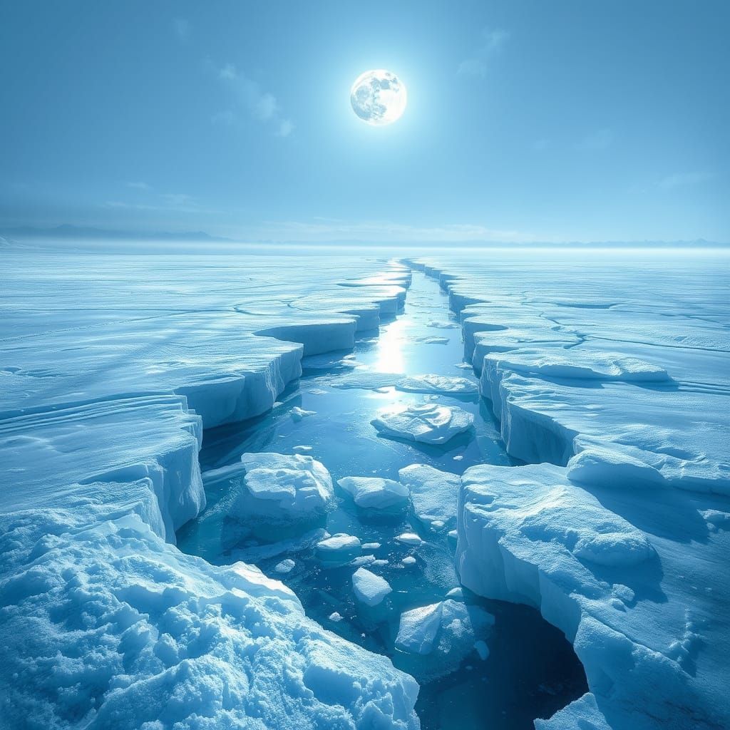 Easily generate your own stunning Arctic images with our free AI image generator, featuring moonlit glacial rivers and icy blues.