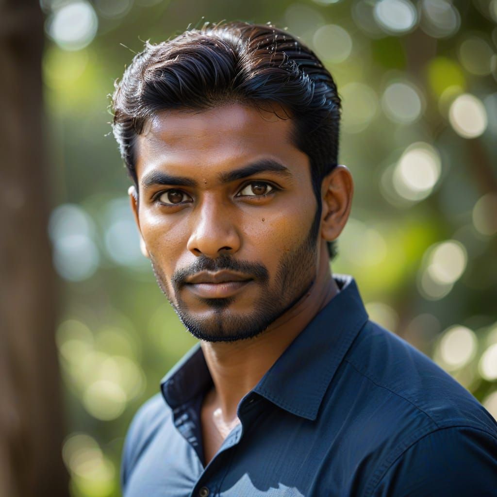 A DSLR photo of a handsome Sri Lankan man. The portrait features a sharp focus, natural lighting, and a beautiful bokeh effect, reminiscent of professional photography.
