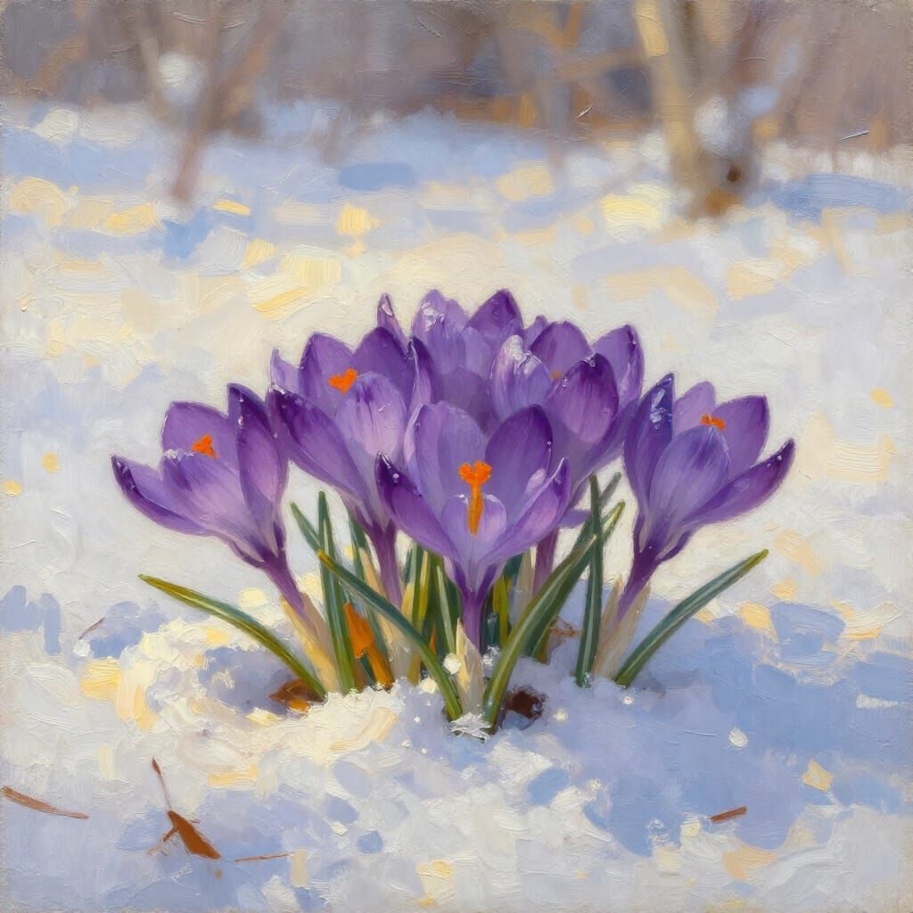 Easily generate unique images of crocuses and other flowers in the snow. Try our free AI image generator today!